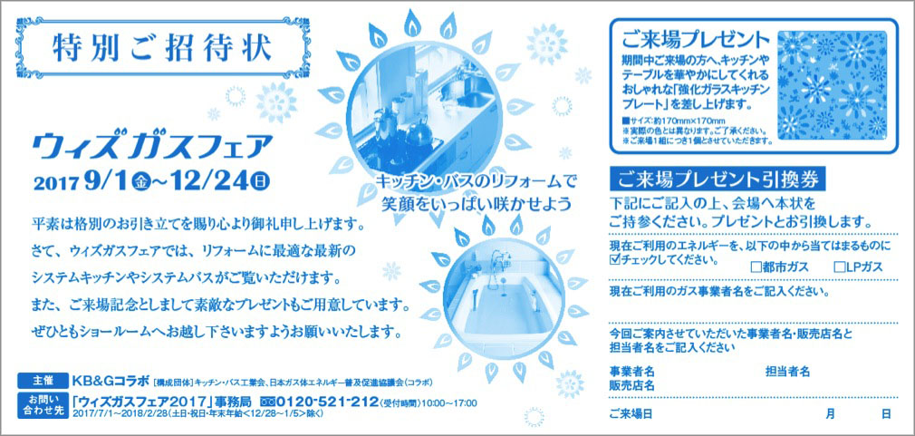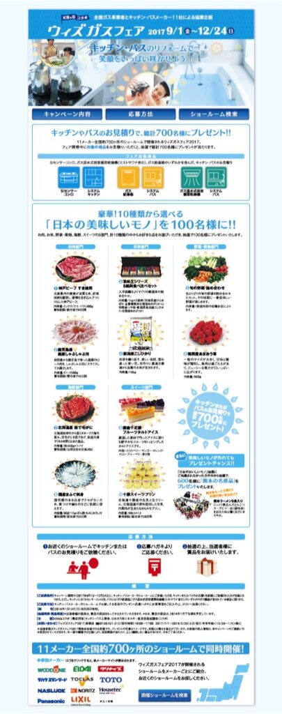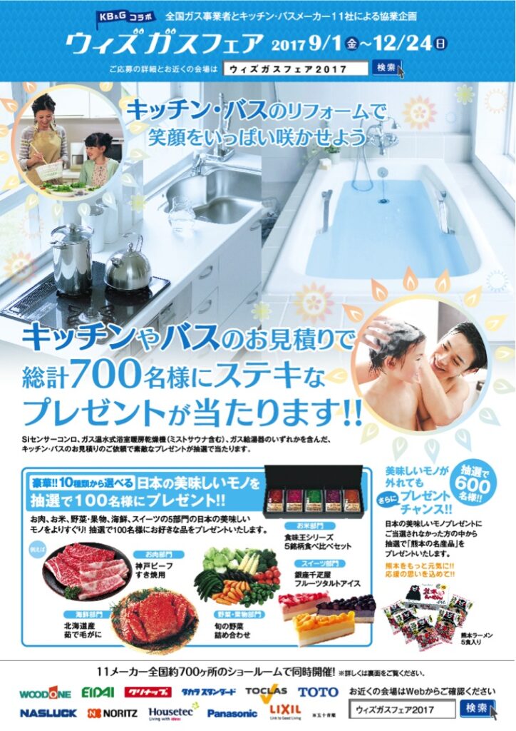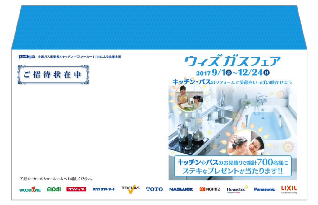 OSAKA GUSWith Gus Fair<2017> 全国ガス事業者・キッチン・バスメーカー11社共協業企画ウィズガスフェア2017 〈制作〉 A2ポスター A4フライヤー A5POP のぼり WEB 封筒 招待状 2021年6月17日 投稿先 FAIR/EVENT フェア・イベント 大阪ガス ← 過去の投稿へ 次の投稿へ →